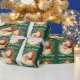 This festive personalised Christmas gift wrap features a wonderful vintage portrait of Santa Claus with his bushy beard. He wears a sprig of holly with a red berry. The portrait is surrounded by a wreath of pine needles on a dark green background. There are two lines for your custom text in pale green; make it say whatever you'd like! It's fun to celebrate Christmas the old fashioned way, and kids will love it!