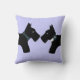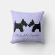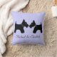 This adorable couple of black Scottish Terriers -- or Scotties -- can be customised with his and her names for a cute gift for a couple. Features a boy and girl Scottie dog, he with a Scottish tartan bow tie and she with a flower on a white collar. The background colour can be changed by clicking on the orange Customise It! button and selecting from the colour palette. The pillow is reversible and has a larger Scottie dog motif on the other side.