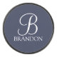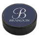 features personalised monogram in white classic script font style and name in white classic serif font style on navy blue background.