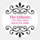 These address labels feature a black scroll design and hot pink text. Customise them with your address.