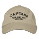 A personalised nautical anchor captain embroidery design on a fine casual embroidered baseball cap. A one of a kind fashion statement sure to make an impression on, or off the boat.