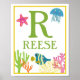 Personalise this colourful sea creatures themed art print set with your child's name! This collection includes three different under the sea scenes. The fourth piece of this set is customised with your child's name and initial. Change the border and text colours for additional customisation.