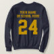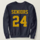 Yellow Gold text on navy blue or your choice of colour shirt. Team school colours senior class sweatshirt for him or her, unisex womens or mens! Add any custom text back such as school, name graduating year, custom sports jersey for a football cheerleader, or anyone who wants to rep your class in high school!