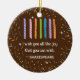 Personalise the birthday message on the reverse side of this yummy looking Shakespeare ornament, and brighten a birthday! Shakespeare's play "The Merchant of Venice" includes this line: "I wish you all the joy that you can wish." These words are perfect for a birthday, and I have accompanied them with my own hand-drawn birthday candles. Great for smart older kids and on up to people over 100.