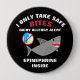 I only take safe bites. Dairy allergy alert button with grey shark swimming and black background. Text in white and a no dairy symbol. Customise with name or other text. Attach to medical bags to note 'epinephrine inside'. Designs by Lil Allergy Advocates www.lilallergyadvocates.com