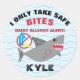 I only take safe bites, Dairy Allergy Alert, Shark food allergy alert stickers. Personalise with name or other text. Great for use at school or daycare to help alert others of a food allergy. Attach to backpacks or medical bags to alert that an epinephrine device is inside the bag. Grey shark swimming on blue waves. Designs by Lil Allergy Advocates www.lilallergyadvocates.com