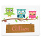 A personalised sign for children, with cute cartoon owls, could by used for a door sign or on the wall. Can also serve as a nice gift. Change name, colour, font of name according to preferance.