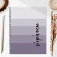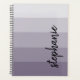 This trendy modern design features five colour block stripes in gradient tints from light to medium plum. Personalise it with your name in vertical black signature handwriting script.