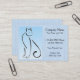 Personalised silhouette cat business cards offering a black drawn outline that has been placed to the left of the card. The background colour on both the front and back of the business cards have been set with light blue stripes All text fields can be totally customised with your own business details.