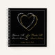 This exquisite wedding guest book design features customisable typography fields for the bride and groom's names and wedding date personalisation. The elegant design is adorned with two ornate, interlocking hearts, symbolising the union of two souls. The guest book is presented in a timeless silver, gold, and black theme, adding a touch of sophistication and charm to your wedding celebration.
