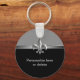Personalised Silver Black Fleur de Lis Key Ring