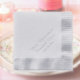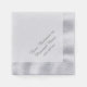 Personalised silver colour napkin for an elegant dinner . Great for a wedding party or a corporate occasion . It comes with an .elegant scrip font . Sold in quantities of 50 .