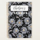 Personalised with the name of your choice and Silver Daisies on Black with gold and white highlights. Design from an original painting. This pretty planner would make an excellent gift for student, Mum, or Friend! Be prepared for the New Year with this beautiful planner. Customise it with your choice of size, cover type, and even the colour of the coil binding!