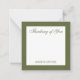 Personalised stationery enclosure notecard with a green border in notes of deep forest sage olive garden green with the sentimental words "Thinking of You". Tuck it into a flower bouquet or meaningful gift. These minimal flower shop inspired enclosure cards bring a retro kitchen vibe to your most thoughtful moments.
