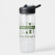 The product design features gardening tools and plants.This original illustration with personalised text makes a simple modern and unique water bottle for green thumb, gardening lover, professional landscaper, and more!