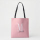 Personalised simple name and monogram pink tote bag
