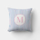 Simple, clean, pretty vertical pinstripe pastel blue and pink throw pillow, personalised with your initial. Perfect for your bedroom, a dorm room, or a nursery.