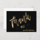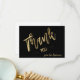 Create a personalised and splendid, chic, minimalist, and simple thank you flat card for your upcoming wedding. This thank you flat card features spacious and beautiful calligraphy script writing in faux gold foil lettering with a chalkboard black background. You can easily customise it with your own text and customise it to your liking. Please note: The "Thank -You-" artwork cannot be edited. Additional Note: The gold foil print is a faux gold foil effect. It is NOT the actual hot stamping gold foil.