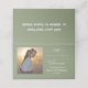 Simple Wedding Photo Placement Card Horizontal Design in sage green background. Add the table number. Replace the template photo and text with your own.