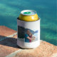Your favourite couples photo highlights the front and back of this custom beer can cooler.