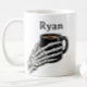 Personalised mug featuring a skeletal hand holding a coffee cup, with a custom name printed above the illustration. A simple inside joke from imaging culture and a fun appreciation gift for radiology and radiography staff, including radiographers, radiologists, and anyone who works in a radiology department. The skeletal illustration also gives it a subtle Halloween or spooky-season feel, making it a playful gift beyond the workplace.