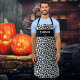 This "Skull" apron features a white skulls pattern with a name and a title.