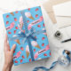 This cool summery personalised watercolor gift wrap features strawberries and strawberry ice cream cones on a sky blue background. I hand-painted the ice cream cones and strawberries on paper, with brushes, the old-fashioned way. The blue colour makes this pattern great for boys as well as girls. Your personalisation goes in script typography in a coordinating rose pink banner. Great for birthdays and holidays as well as everyday gifts!