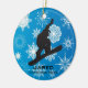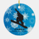 Snowboarding Personalised Ornament Christmas 20XX on a snowflake background. All text customisable, front and back! To eliminate any text, delete sample text and leave blank.