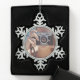 Handcrafted pewter snowflake ornament displays your favourite photo! [Alt-text: Elegant metal snowflake with circular photo window, etched winter designs, and satin ribbon hanger.] Perfect for memorials, weddings, or family memories. Personalise with names/dates. Durable antique finish. Includes photo-protective backing. Ideal Christmas gift for parents, grandparents, or pet lovers. Coordinates with winter-themed decor. A cherished keepsake!
