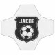 Personalised soccer ball design with custom name. Cool gift for athletic kids. Personalised Christmas or Birthday gift idea for sporty boys and girls who love playing soccer / football. Athletic typography design with shield emblem logo. Add your own name, lucky number, age, sports quote or monogram. Make your own fun party favour for a children's Birthday party. Unique present for grandson, son, grandchild, granddaughter, daughter, nephew, cousin etc. Also great as thank you gift to footbol coach, soccer mum, soccer dad etc.