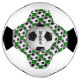 A football soccer ball design which is fully customisable with your own name or text. The background features a pattern of soccer balls on a football pitch green. Ideal for any soccer player, football coach or soccer fan.
