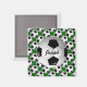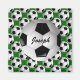 A football soccer ball design which is fully customisable with your own name or text. The background features a pattern of soccer balls on a football pitch green. Ideal for any soccer player, football coach or soccer fan.