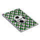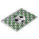 A football soccer ball design which is fully customisable with your own name or text. The background features a pattern of soccer balls on a football pitch green. Ideal for any soccer player, football coach or soccer fan.