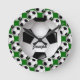 A football soccer ball design which is fully customisable with your own name or text. The background features a pattern of soccer balls on a football pitch green. Ideal for any soccer player, football coach or soccer fan.