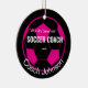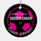 Add your coach's name or special message to a coach on this fully customisable ornament. Makes a great Christmas gift,coach appreciation gift, or a end of the year gift for a favourite soccer coach. Pink soccer ball with black background