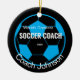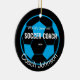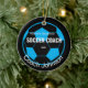 Add your coach's name or special message to a coach on this fully customisable ornament. Makes a great Christmas gift,coach appreciation gift, or a end of the year gift for a favourite soccer coach. Blue soccer ball with black background