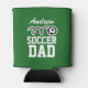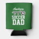 Personalised can coolers for soccer dad. Soccer ball design with custom name. Cute beverage holder with whimsical ball. Fun sport theme bottle and cancoolers for parents or coach. Make your own for sporty dad, father, uncle, grandpa, stepdad, brother, son, mum, mother, sister, wife, aunt, daughter etc. Customisable background colour ie green. Cosy gift idea for sports theme Birthday party, bbq, tournament etc. Keeps beer and other drinks cool. Double sided cosy print. Make your own party favour for friends and family. Funny soccer accessories.