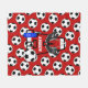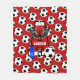 Treat the future soccer star in your life to one of these personalised monogram soccer Throw blanket. Featuring the Letter A with a template for the name to be added . Hanging from the letter A is a pair of soccer cleats, with a initialled water bottle and soccer ball either side. Background feature matching red as in the Initial and black and white soccer balls.
