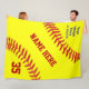 Personalised Softball Fleece Blanket with Your Text and Logo or Photo or DELETE. CALL Designer Linda for HELP or Design CHANGES: 239-949-9090 Type in her Name or Your Text and her Jersey Number or Monogram. Click "Change" by the Temporary Image or DELETE the image and or text. CALL Designer Linda to create matching Softball gifts for girls. Fantastic senior night softball gifts, personalised softball team gifts or Softball Christmas presents or Birthday presents. Memorable Softball Room ideas for girls bedroom or mum and dad can show off their daughter's name and number at the game on a chilly evening.