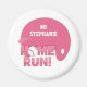 This fridge magnet has a pink softball helmet with the saying Home Run written with a softball as the o in home. You can easily customise this with a name and number for the player. Graphics by Zenware Designs at Mygrafico