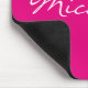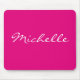Personalised solid colour neon pink mouse pad. Modern colourful design with custom name or monogram. Cute gift idea for trendy women and girls. Elegant script typography.