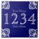 Spanish House Number Tile - Blue on white. With custom name and street name.