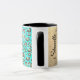 On this design is a gold metallic sheen on the side of the mug where you can personalise it then a glittery sparkly pattern that blends into a glittery leopard print with a blue turquoise backdrop for contrast. Trendy chic modern vibes.