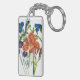 Old-fashioned botanical illustration of spiderwort and daylily in blue, purple and orange