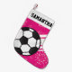 Personalised Sporty Stripes Soccer Ball Pink Small Christmas Stocking