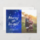 Modern Personalised Merry and bright starry night sky Christmas photo card postcard featuring beautiful a galaxy of stars and lovely handwritten typography. Personalise with your very own message.