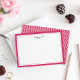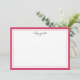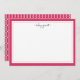 Our chic personalised stationery flat cards feature a bright raspberry pink border with your name or monogram gracing the top in charcoal grey modern script lettering. Reverse side reveals a modern lattice pattern in matching vibrant pink and white.