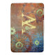 Rusty Steampunk Cogwheels and gears against a vibrant verdigris rusty blue background. Personalise it with your initial or give as a gift.