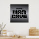 Add your own name to this cool man cave poster! It features an awesome diamond plate pattern background with a cool steel finish that fades to a darker grey at the top and bottom and bold black lettering to spell out your name and "man cave". The lettering even has screws to complete the awesome industrial look.