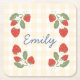 Personalised Strawberry Berry Sweet Party Picnic Square Paper Coaster illustrated by international designer, Kathrin Legg